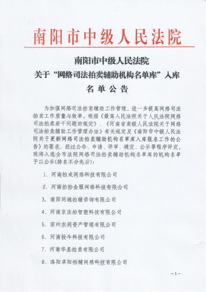 拍賣公告(南陽房地產(chǎn)租賃經(jīng)營權) 2025-10-28 |